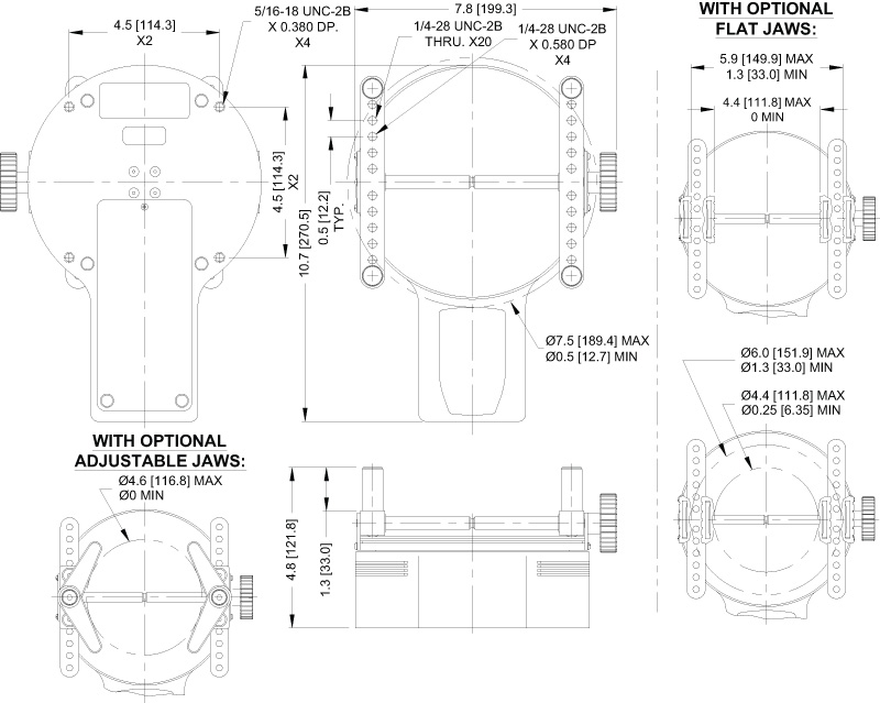 MESURgauge 測量軟件:可顯示時間與位移的關系、計算統計測量結果、Excel報告輸出等.需要數據線纜more info 加長圓柱:加長圓柱2.5" (63 mm) 4" (101 mm) 平口夾具:可用于夾持直角實驗樣品等 可調夾具CT003:4邊防滑設計、可調節開口尺寸、容納多種樣品規格 校準套件:可用于自行校準TT01瓶蓋扭力計,套件不包括砝碼。 攜帶式儀器箱:可裝TT01瓶蓋扭力計,夾具,充電器,及配件. 不銹鋼加載臺:預留安裝螺紋孔適用于特殊工裝的安排