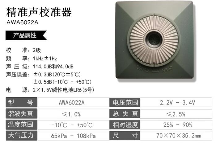 杭州愛華AWA6021A/AWA6022A聲學(xué)校準(zhǔn)器的技術(shù)參數(shù):