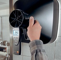 testo 417精密型風(fēng)速儀,配置一體式葉輪風(fēng)速/溫度探頭,直徑100mm,測(cè)量風(fēng)速、風(fēng)量和溫度。 直接顯示體積流量。只需輸入管道的截面積,即可精確計(jì)算出流量。可以快速切換至當(dāng)前的溫度讀數(shù)。此外,還可以顯示氣流的方向。