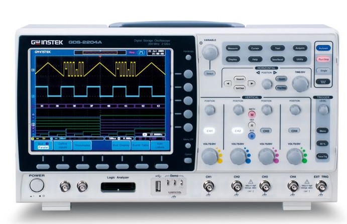 固緯GDS-2204A數字示波器體現了一種高價值的設計構思,包括2GSa/s采樣率、2M記錄長度、4輸入通道、超大彩色LCD顯示屏以及VPO (Visual Persistence Oscilloscope)技術,80,000wfms/s的更新率可以快速完成波形捕獲和處理。