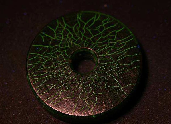 利用LUYOR-21紫外線閃光燈拍的熒光滲透的標準塊: