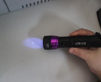 上圖為手電筒紫外線燈LUYOR-3130在潔凈室檢查效果圖