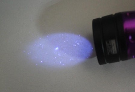 大多數(shù)的體液在高強(qiáng)度的紫外線作用下可以看到,是因?yàn)轶w液有自然熒光反射的特點(diǎn)。在復(fù)雜的刑偵現(xiàn)場(chǎng),可以利用高強(qiáng)度的紫外線燈簡(jiǎn)單及不復(fù)雜的使用方式尋找到有價(jià)值的痕跡。在高強(qiáng)度紫外線能量的激發(fā)下,這些體液的熒光反射是人的肉眼可以直接看到的。雖然,這種方式不能直接確認(rèn)所找到的體液是哪一種,但是,通過使用高強(qiáng)度紫外線燈遠(yuǎn)距離大面積的搜尋,可以直接幫助你確定在哪里有提取價(jià)值的痕跡物證,然后可以對(duì) 這些地方進(jìn)行編號(hào)標(biāo)出,從而為下一步的分析提供有價(jià)值的物證。